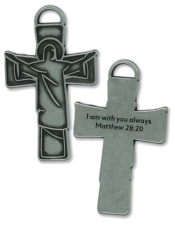 This Easter cross features an image of our risen Lord. It is designed to fit on key rings or on a necklace chain as a reminder of our Lord’s words, “I am with you always.” Matthew 28:20.